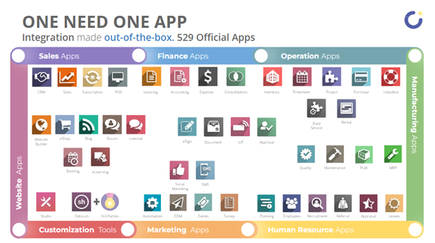 Odoo เป็นซอฟต์แวร์ ERP จากประเทศเบลเยี่ยม ช่วยในการบริหารจัดการธุรกิจ มีแอปพลิเคชันให้เลือกหลากหลายตามการใช้งานกว่า 10,000 แอป ครอบคลุมทุกความต้องการทางธุรกิจแบบครบวงจร ตั้งแต่การตลาด การขาย การจัดซื้อจัดจ้าง คลังสินค้า บัญชี การผลิต ระบบหน้าร้าน (POS) อีคอมเมิร์ซ และอื่นๆ อีกมากมาย เราไม่จำเป็นต้องใช้ใช้งานหลายระบบในการทำงานอีกต่อไป Odoo ช่วยรวมข้อมูลทุกอย่างไว้ที่ศูนย์กลางให้กระบวนการทางธุรกิจเป็นแบบอัตโนมัติได้อย่างเต็มที่