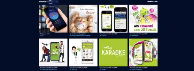 - ออกแบบและผลิตโฆษณาให้กับเอไอเอส เพื่อใช่ในการโปรโมทโปรโมชันหรือกิจกรรมต่างๆผ่านทาง[เว็บไซต์aiscallcenter
