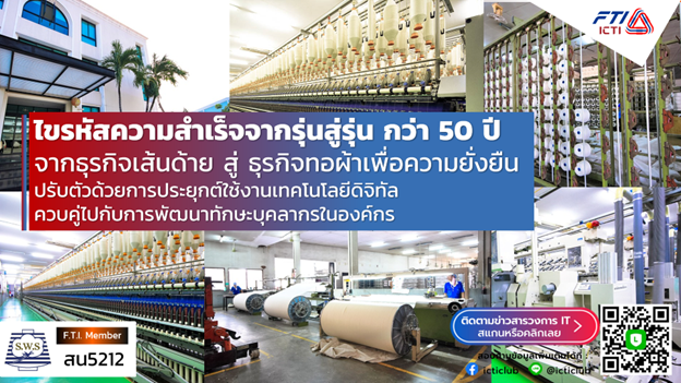 ไขรหัสความสำเร็จจากรุ่นสู่รุ่น อยู่รอดมากว่า 50 ปี จากธุรกิจเส้นด้าย สู่ธุรกิจทอผ้าเพื่อความยั่งยืน ปรับตัว เปลี่ยนแปลงด้วยวิสัยทัศน์ของผู้บริหารยุคใหม่ ปรับปรุงและใช้งานระบบ ERP ครบวงจร ควบคู่ไปกับการพัฒนาทักษะบุคลากรในองค์กร